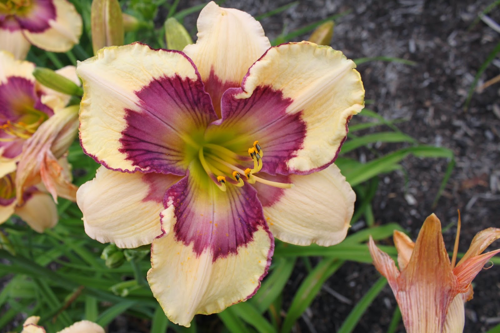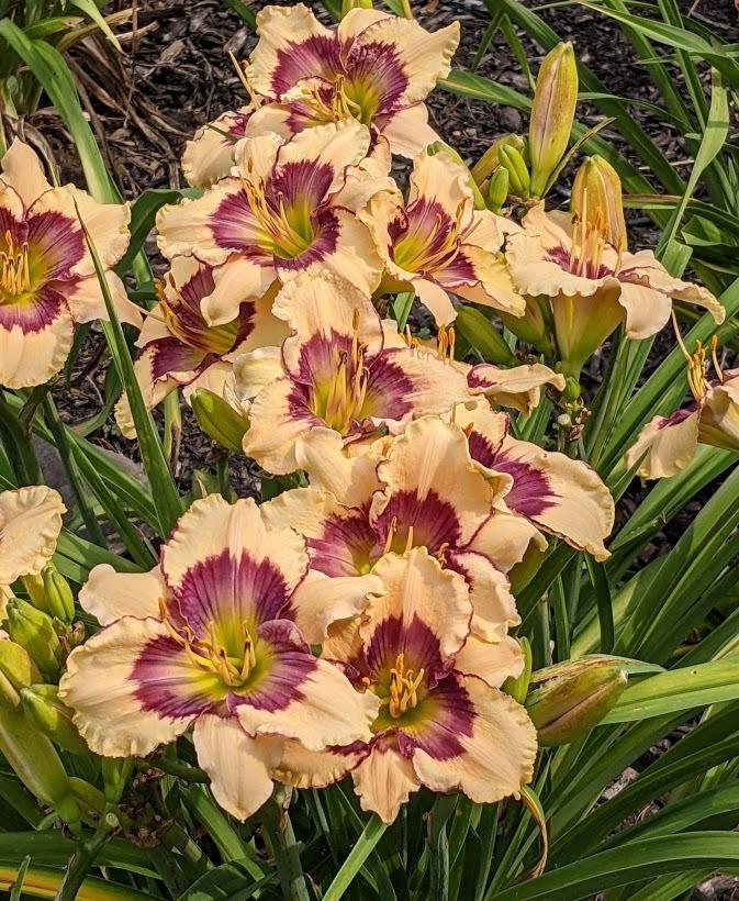 Cream with a multiple patterned Violet eye.
