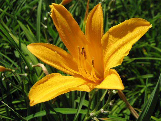 Trumpet shape with a deep golden color. Small blooms that are compact against the foliage.