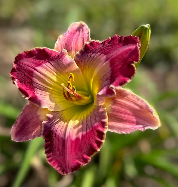 Contrasting sepals and petals that bounce off each other. The bold petals that are marked with a light pink watermark. If you are looking for a creative face, this daylily is for you.