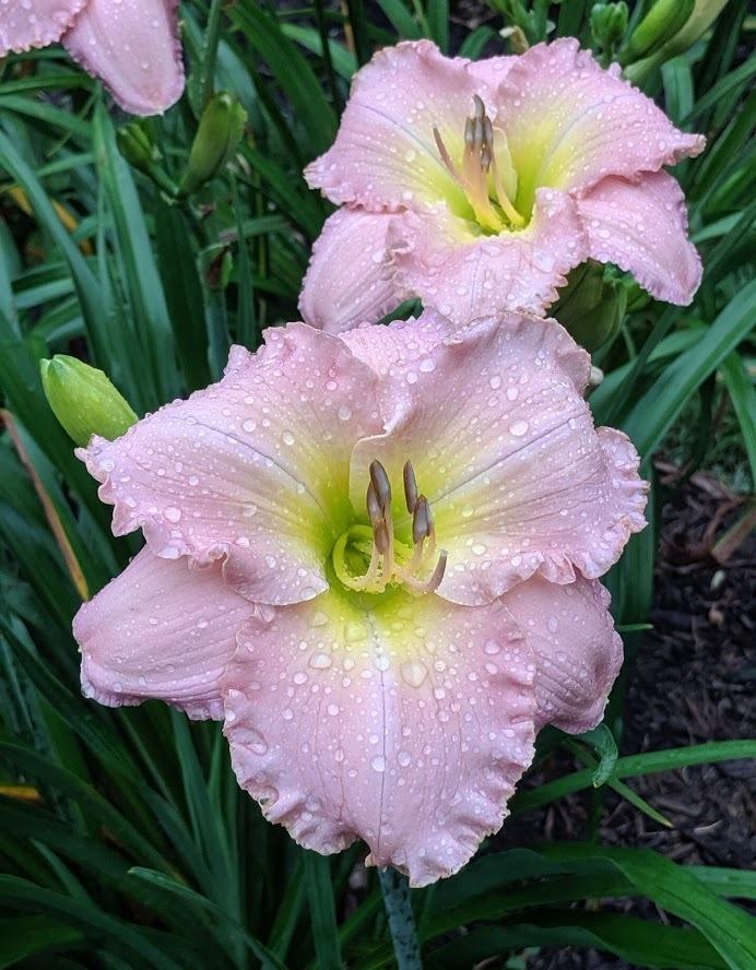 Pastel pink with a golden throat. If in need of a fairytale garden this beautiful flower will be loved by all.